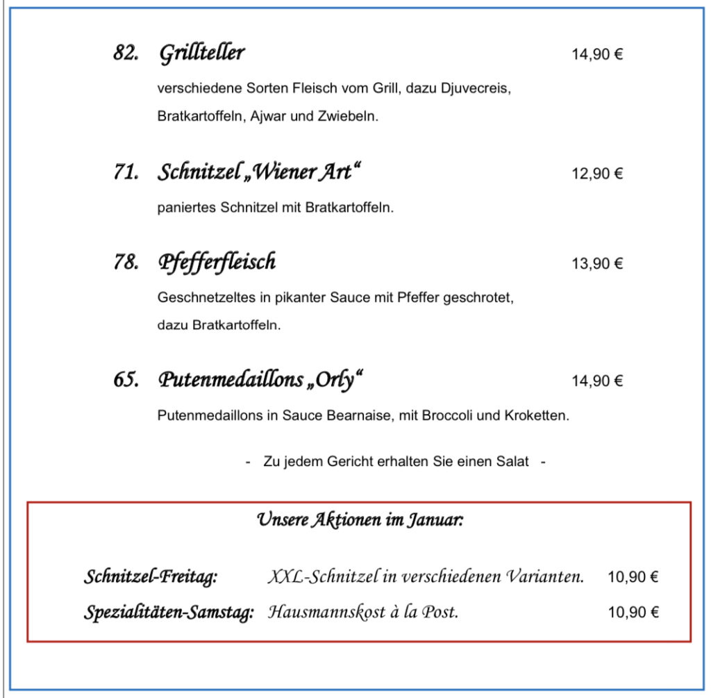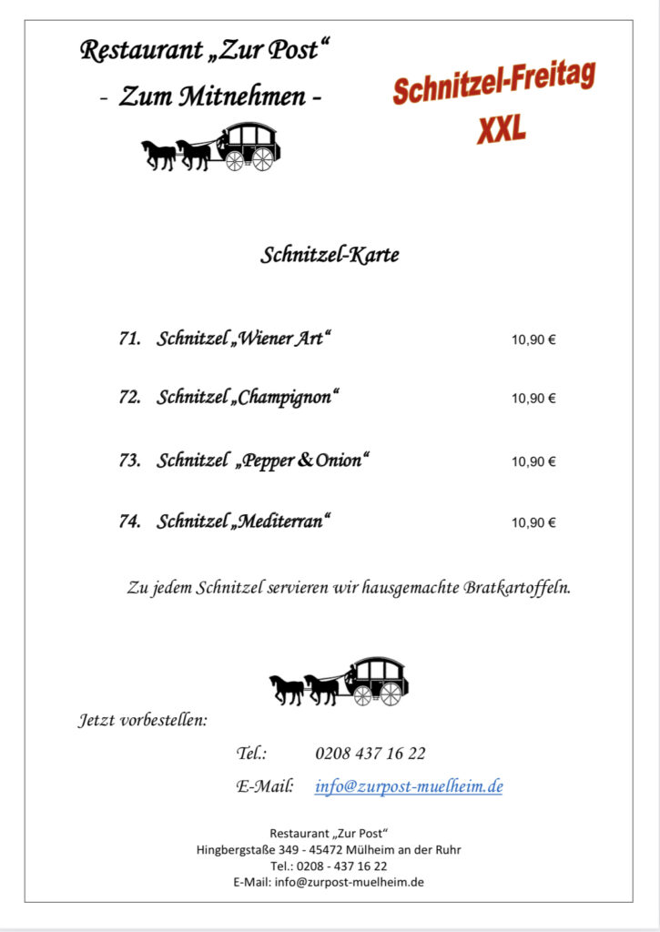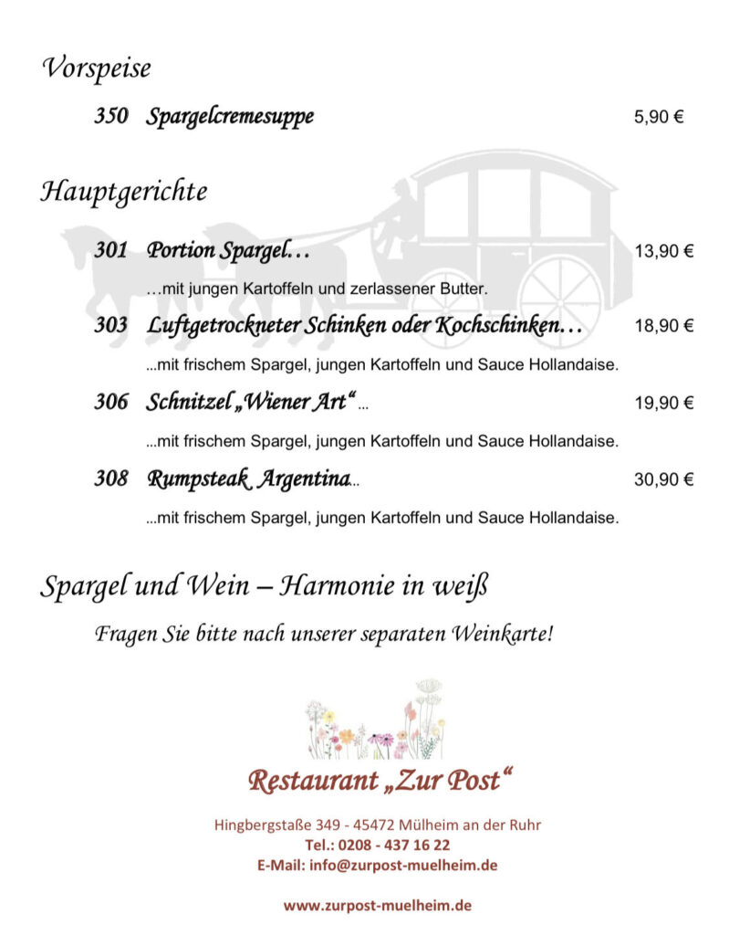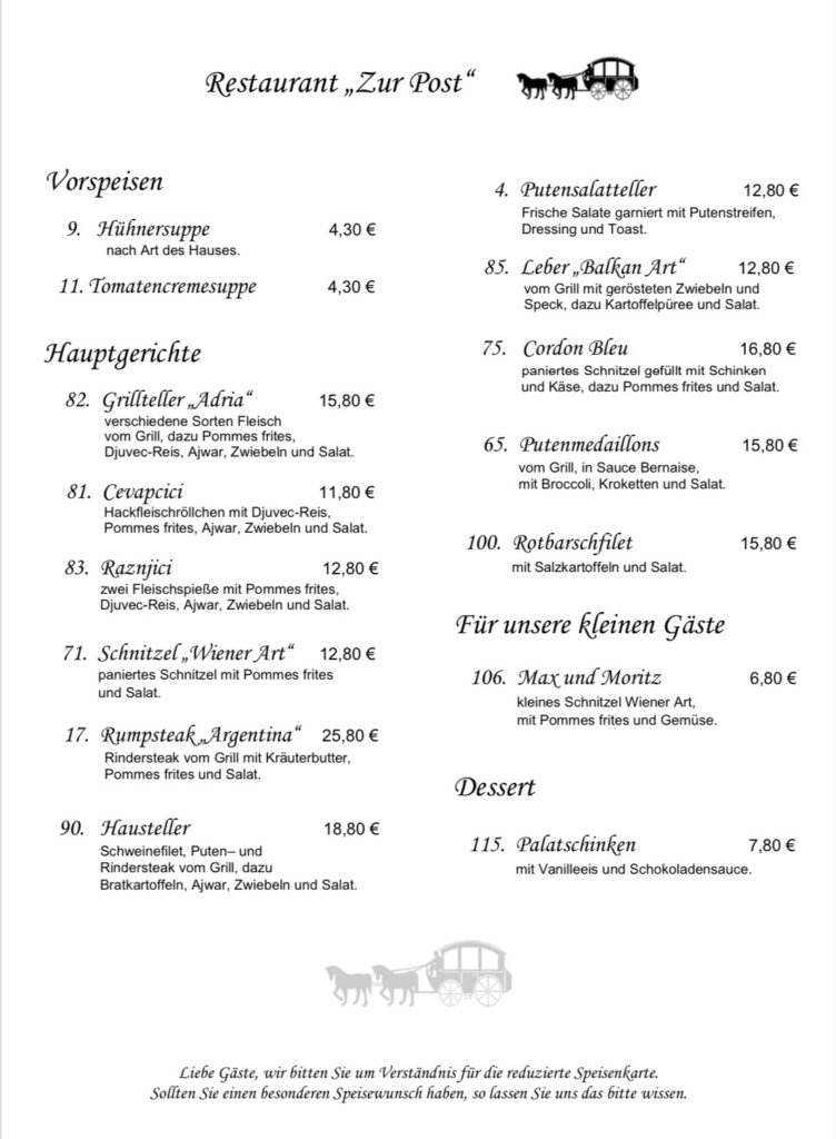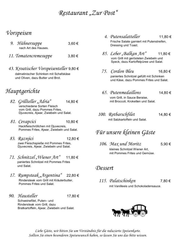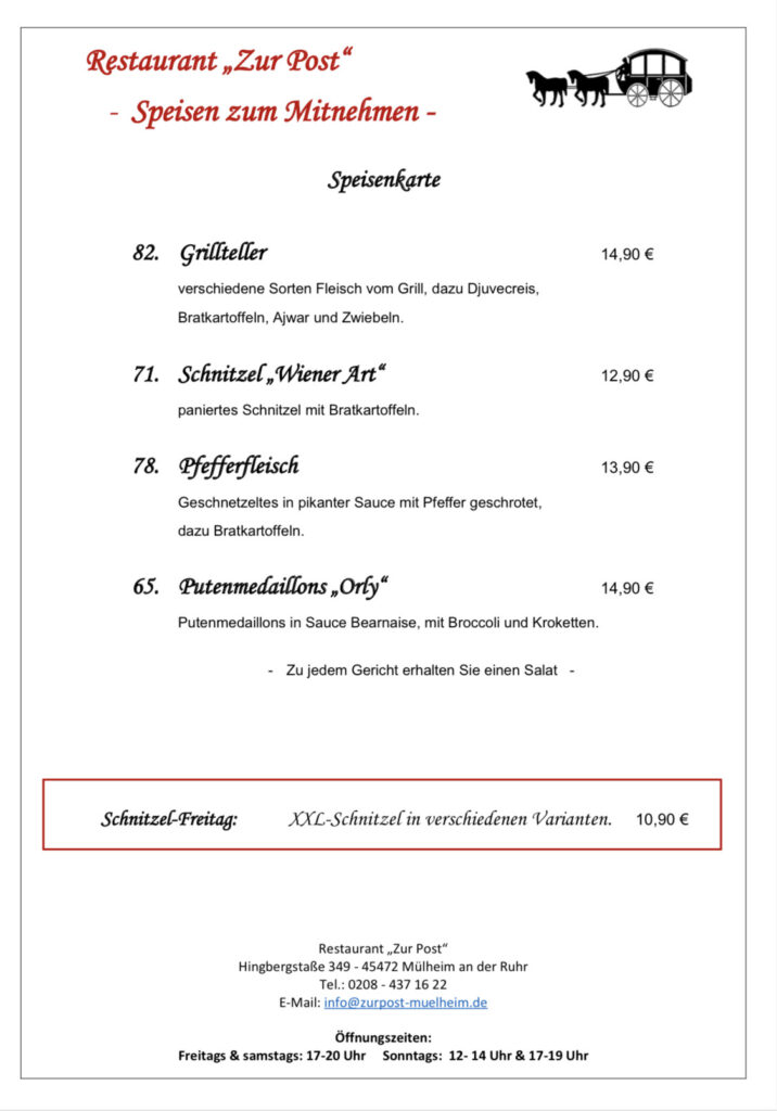 Dienstag bis Sonntag: 12 – 15 und 17 – 23 (Küche bis 22:00)